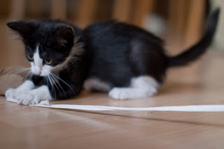 Kisu ei vaikuttanut ollenkaan nimensä mittaiselta mieheltä, mutta syykin paljastui meille viikon mittaan. Aluksi Urho pelkäsi meitäkin ja vietti mieluiten aikaansa sohvan alla. Torstai-iltana aloimme pohtia miten kissan sukupuolen näkee. Google osasi kertoa ihan havainnoivien kuvien avulla miltä näyttää poika- ja tyttökissan hännän alla. Sohvan hämärissä ihmettelimme Urhon hännän alusta ja lopulta meidän piti viedä kisu keittiön työvalon alle. Ja kyllä. Meidän Urho onkin tyttö.