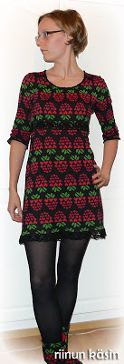 Lanka-arkusta löytyi sopiva puuvillalanka ja netistä englanninkielinen ohje. Syötävän ihana vadelmaneulos on Majapuulta ja tunikan kaavat Ottobresta 5/2012.