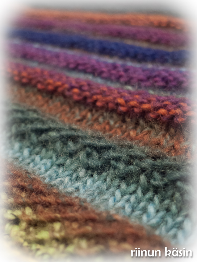Langan ostin ex tempore Tarjoustalon laarista, ja se on Novitan Puroa. Raidoitin tuubin neulomalla oikein värillä lehto ja nurin värillä pakkasyö.