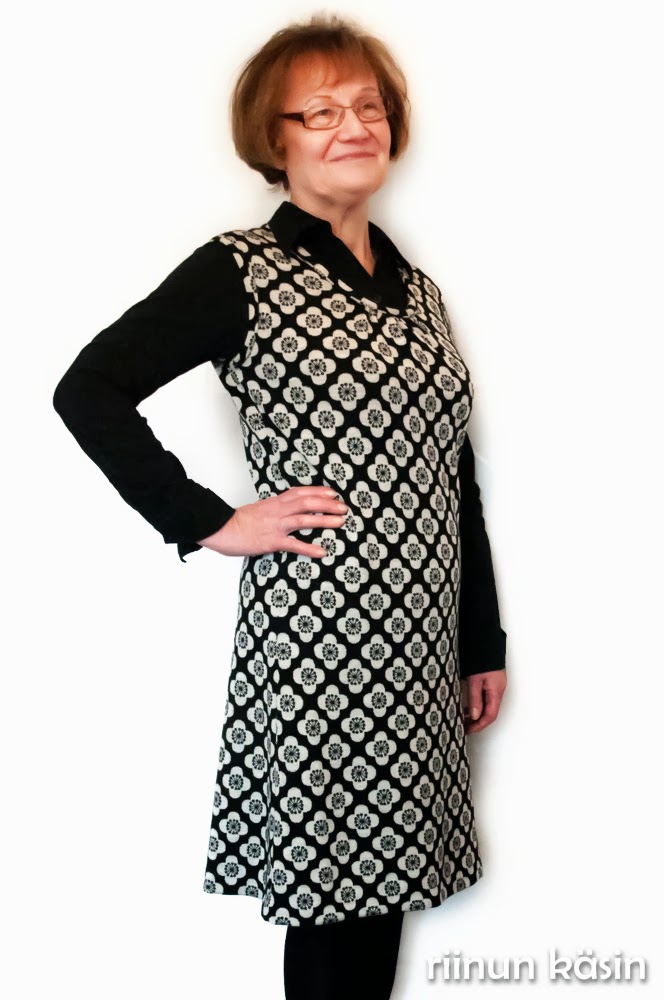 Äitini, eli kotoisasti mummi, sai Majapuun merinosta itselleen toiveidensa mukaisen villamekon. Kaavojen pohjana oli itselläni hyväksi toteamani Stormy Blue (Ottobre 5/2012) koossa 42 (ilman saumavaroja).