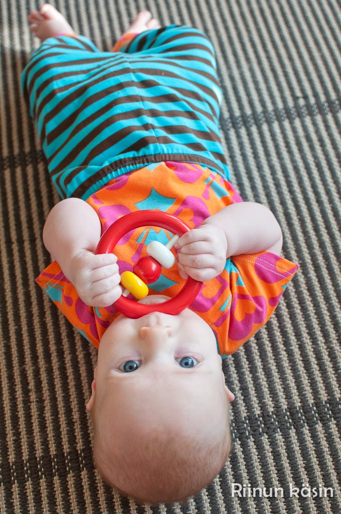 Pikkuveli sai Ottobren kaavoilla Baby Whale -bodyn (74) ja Baboon-housut (74). Näissä on kasvunvaraa, mutta onhan tässä kesäänkin vielä aikaa.