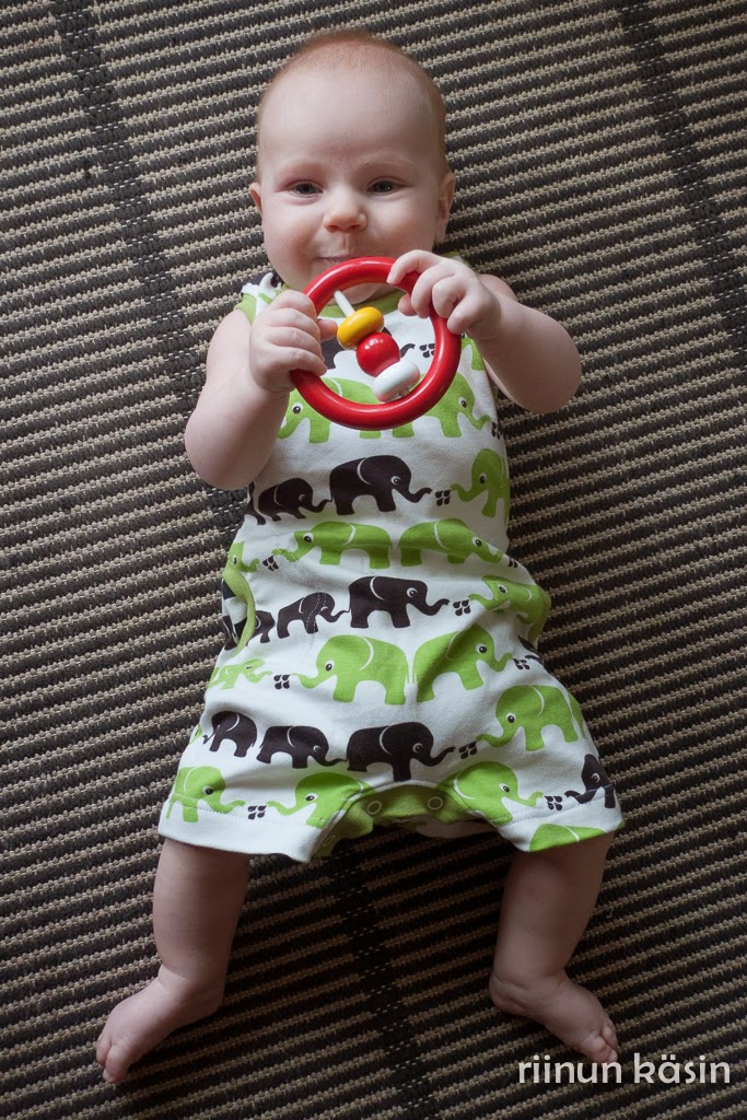 Hellehaalari pääsi tänään jo käyttöön, kun ulkona lämpö nousi hyvinkin hellelukemiin. Ompelin tämän siis jo ajat sitten, mutta teknisten ongelmien vuoksi en saanut kuvia aiemmin kamerasta ulos.. Kaavat ovat Ottobresta (3/2013) Star-star koossa 74. Se onkin Einolle juuri sopiva nyt 🙂