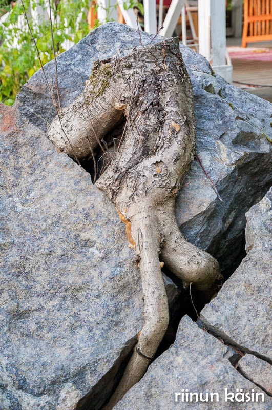 Nyt alkaa kesä kääntyä kohti syksyä, ja pihassamme on suurimmat raivaustyöt tehty. Harmillista, etten tajunnut kuvata kaikkea ENNEN työn aloitusta. Onneksi kännykällä tuli napattua edes muutama kuva alkutilanteesta. Raivauksen alkuvaiheessa kuljin kuitenkin pisin pihaa koputellen kuokalla heinikkoa löytääkseni vanhoja umpeenkasvaneita kukkapenkkejä ja kiveyksiä. Tässä siis kuvia. Puhukoot ne puolestaan.