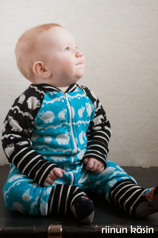 Talvella tein tästä ja haalarin koossa 62 yksivärisellä merinovuorilla. Se oli liian kuuma. Tämä vaikuttaisi oikein sopivalta rattaissa äp-pussissa nukkuvalle.