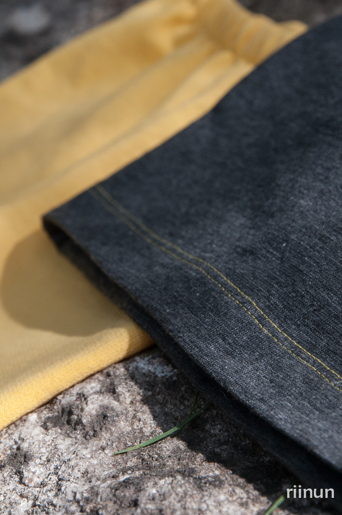 Facebookin ompeluryhmässä heitettiin haaste keltaisesta ompeluksesta. Ensin ajattelin, ettei minulla edes ole keltaista kangasta, mutta sitten silmiin osui työpöydällä lojuvat keskeneräiset housut. Nehän olivat keltaiset!