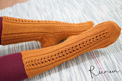 Kauniit sukat! Minä taas olen neulonut koko talven pelkkiä sukkia, nyt yritän keksiä mitä ihmettä seuraavaksi aloittaisi :D.
