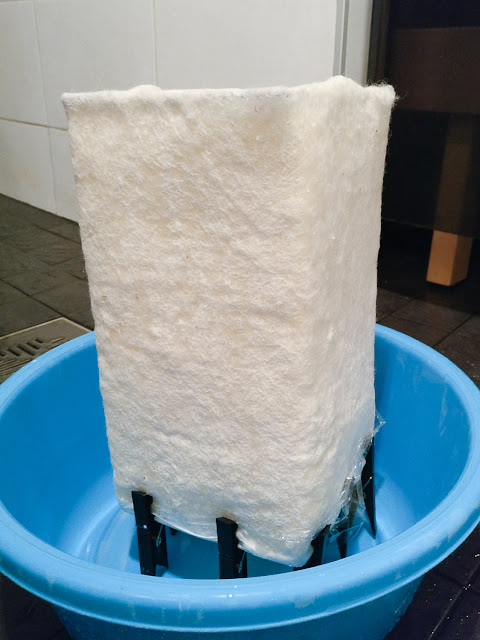 Tein tämän varjostimen käsityökasvatuksen perusopintojen kurssityönä, jonka teemana oli arjen luksusta. Koska työn kulku ja valmistusohje piti kirjoittaa portfolioon, laitan sen myös tänne blogiin, jos joku muukin innostuu tekemään oman huopavarjostimen! Oma kokemukseni huovutuksesta rajoittui ala-asteella huovuttamaani hiireen, lasten kanssa huovuttamiini palloihin sekä kurssilla tekemääni käsinukkeen. Ohuen huopalevyn huovuttaminen oli kuitenkin yllättävänkin helppoa.